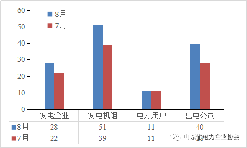 發(fā)電企業(yè)、發(fā)電機組以及售電公司數(shù)量相較7月都有所增加,其中發(fā)電企業(yè)數(shù)量增加6家、發(fā)電機組增加12臺、售電公司增加12家(見圖1)。