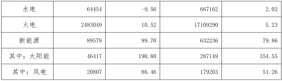 發(fā)電量情況。8月份當(dāng)月,全省發(fā)電量263.71億千瓦時(shí),同比增長(zhǎng)11.6%。其中水電6.45億千瓦時(shí),同比減少9.56%;火電248.3億千瓦時(shí),同比增加10.52%;新能源8.96億千瓦時(shí),同比增長(zhǎng)99.7%。