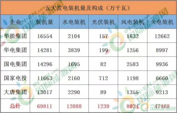 首先來看發(fā)電領(lǐng)域的霸主——五大四小的電力在每個(gè)電力板塊的裝機(jī)情況。