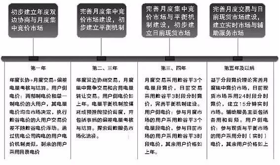 我國電力市場交易機(jī)制的建立是從年度、月度等中長期電量交易開始的。結(jié)合“基本規(guī)則”提出電力中長期交易到現(xiàn)貨交易的時(shí)序路線規(guī)劃,如下圖所示,供市場設(shè)計(jì)者、運(yùn)營者、監(jiān)管者及市場主體參考。圖中時(shí)間節(jié)點(diǎn)只是大致估算,最終取決于各地市場建設(shè)的實(shí)際進(jìn)展。