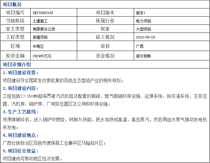 近期優(yōu)質(zhì)電力項目一覽,涉及大唐青島燃氣熱電有限責任公司天然氣熱電聯(lián)產(chǎn)工程、百色百礦集團有限公司(德保)高性能鋁材一體化項目電源工程、山東豐源生物質(zhì)發(fā)電股份公司燃氣-蒸汽聯(lián)合循環(huán)熱電聯(lián)產(chǎn)項目等,詳情如下