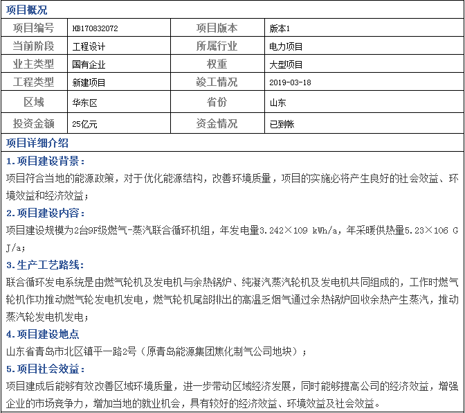 大唐青島燃氣熱電有限責任公司天然氣熱電聯(lián)產(chǎn)工程