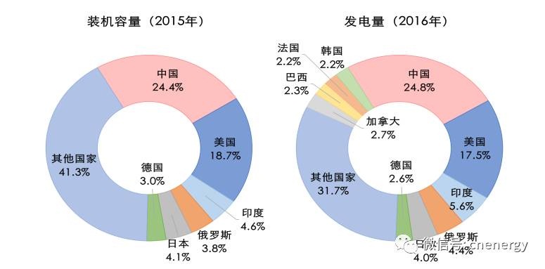 部分國(guó)家發(fā)電裝機(jī)和發(fā)電量占比情況