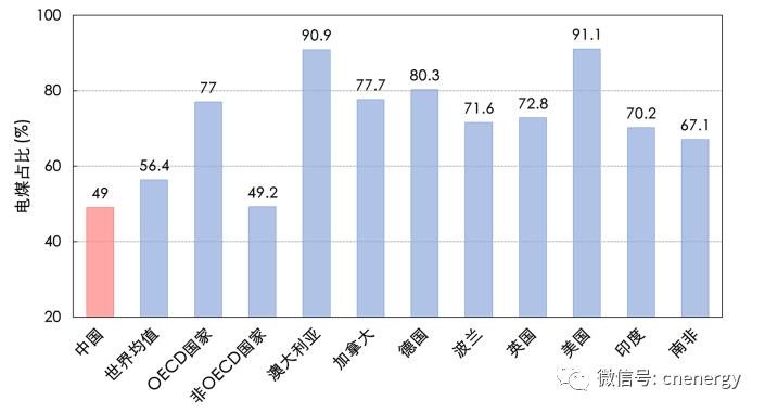 世界部分國(guó)家和地區(qū)電煤比重