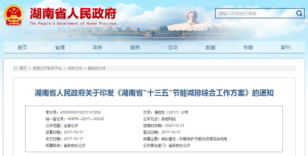 湖南省"十三五"節(jié)能減排綜合工作方案