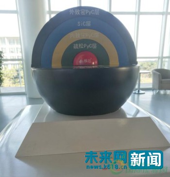高溫氣冷堆采用的全陶瓷包覆顆粒球形燃料元件模型。(未來網(wǎng)記者 廖瑾 攝)