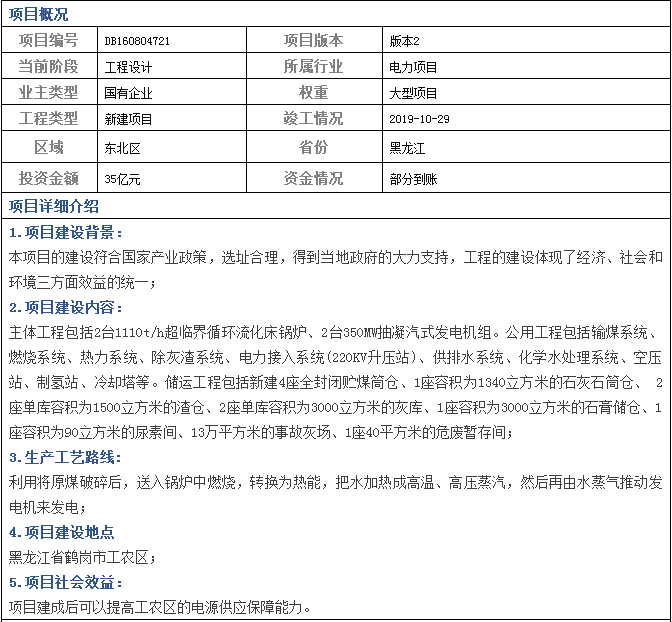 項目|近期優(yōu)質(zhì)電力項目一覽:3個火電項目