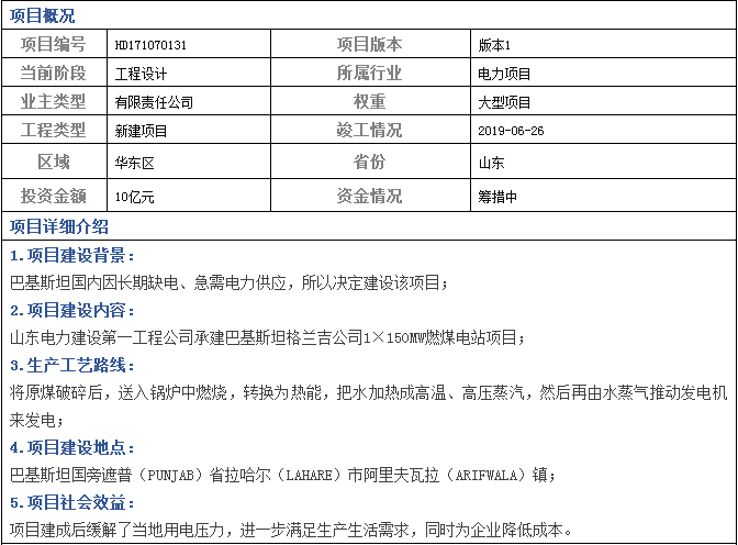 巴基斯坦格蘭吉1×150MW燃煤電站項目