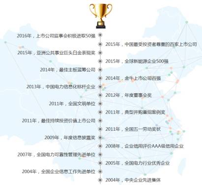 國電電力連續(xù)多年被評為最具發(fā)展?jié)摿ι鲜泄荆群笕脒x上證50指數(shù)和滬深300指數(shù),保持著國內(nèi) A 股證券市場綜合指標(biāo)名列前茅的績優(yōu)藍(lán)籌股地位。國電電力先后獲得企業(yè)信用評價(jià)AAA級信用企業(yè)、年度信息披露獎(jiǎng)、最佳持續(xù)投資價(jià)值上市公司、最佳主板藍(lán)籌公司、中國最受投資者尊重的百家上市公司等獎(jiǎng)項(xiàng)。