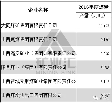 2016年山西七大煤炭集團合計產(chǎn)煤43443萬噸。除山煤集團年產(chǎn)量2000萬噸屬中型企業(yè)外,其余六家煤炭集團年產(chǎn)量均在5000萬噸以上;同煤集團以11786萬噸年產(chǎn)量位居第一。