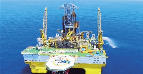 圖為二0一七年六月九日,我國(guó)在位于廣東珠海市東南三百二十千米的南海神狐海域進(jìn)行試采可燃冰的作業(yè)平臺(tái)。(資料圖片)