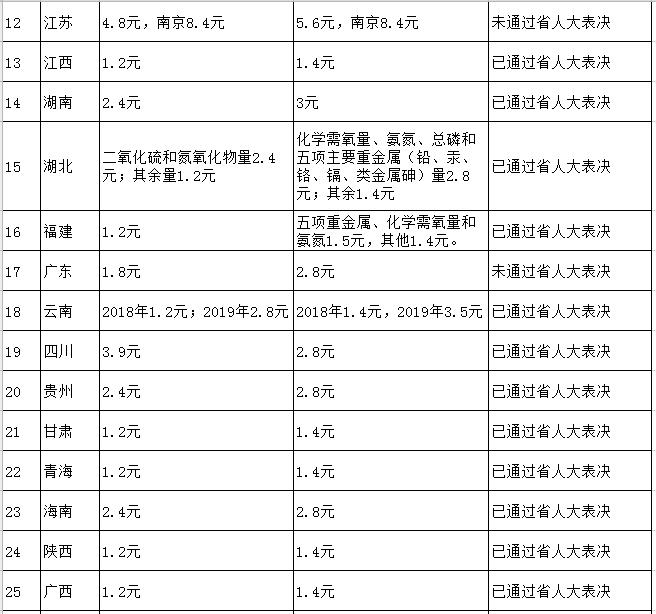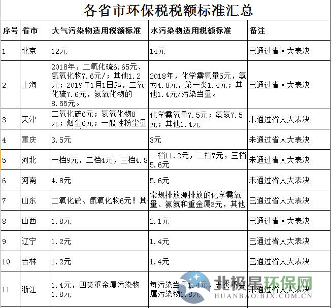 匯總|最新各省市環(huán)保稅額標準匯總