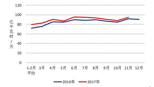 圖3 2016、2017年以來分月制造業(yè)日均用電量