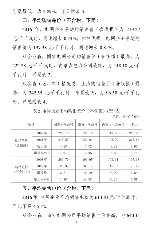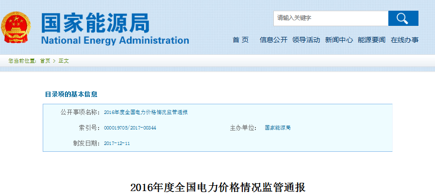 重磅|國家能源局2016年度全國電力價格情況監(jiān)管通報