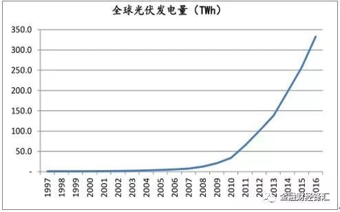 新能源發(fā)電的快速崛起,與世界各國日益重視環(huán)境保護(hù),倡導(dǎo)節(jié)能減排密切相關(guān)。風(fēng)電、光伏作為最為清潔的能源,受到全球青睞,各國紛紛出臺了鼓勵(lì)新能源發(fā)展的措施,促進(jìn)了風(fēng)電、光伏等新能源的發(fā)展。同時(shí),由于技術(shù)的進(jìn)步,新能源發(fā)電的成本也快速下降,是其崛起的另一重要推動力。從1997年-2016年這二十年間,全球新能源發(fā)展迅猛。風(fēng)電裝機(jī)從7.64GW增長到468.99GW,光伏裝機(jī)從0.23GW增長到301.47GW,分別增長了60倍和1284倍。風(fēng)電,光伏發(fā)電量快速增長,分別從1997年的12TWh、0.8TWh增長到2016年的959.5TWh、331.1TWh,風(fēng)電發(fā)電量增長了79倍,光伏發(fā)電量增長了439倍,已經(jīng)成為電力供應(yīng)中不可忽視的電源。