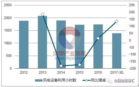 風(fēng)電設(shè)備利用小時(shí)數(shù)及同比增減