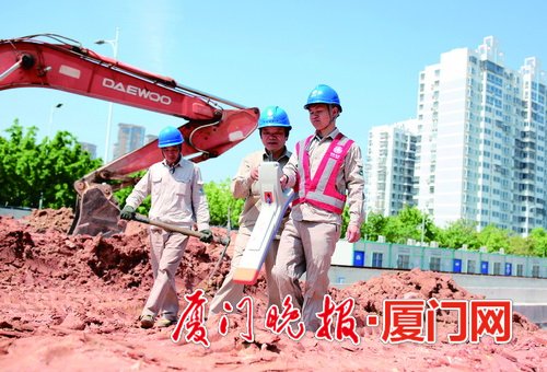 -廈門供電公司配電運檢室在地鐵嶺兜軟件園站工地巡查電纜。陳春生攝
