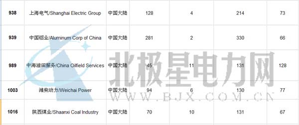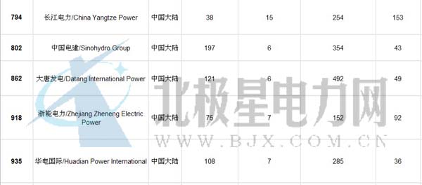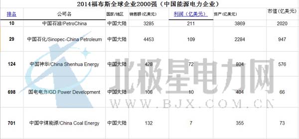 2014福布斯全球企業(yè)2000強(中國能源電力企業(yè)部分)