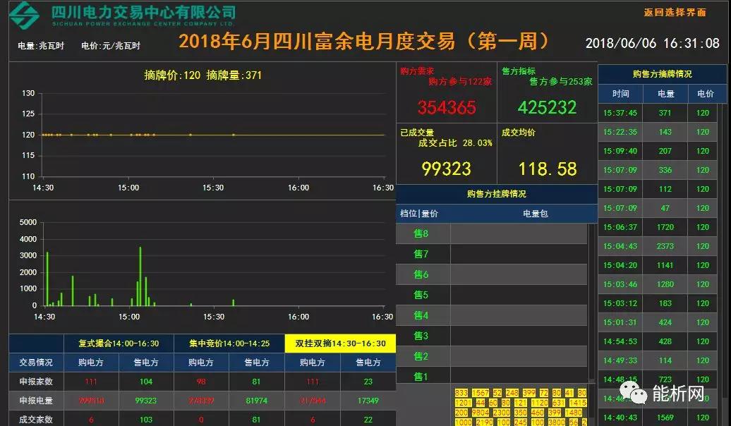 6月6日下午,四川電力交易中心舉行6月份第一周富余電量集中交易,小編也全程關(guān)注了整個(gè)交易過程,整個(gè)交易結(jié)果如下: