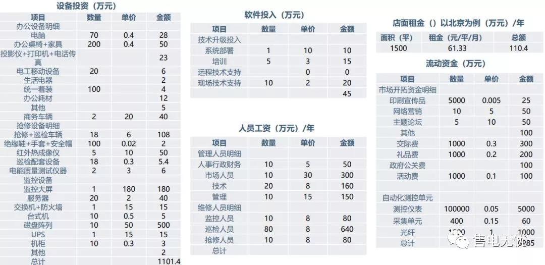 配電代運(yùn)代維線下服務(wù)投資分析(1000用戶量)