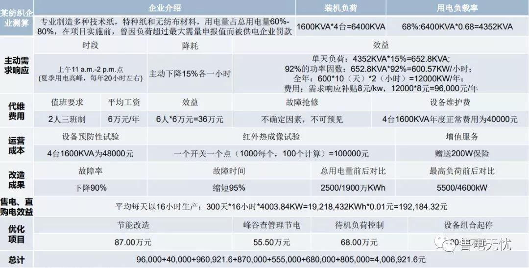 一般工業(yè)企業(yè)用能服務(wù)企業(yè)效益舉例