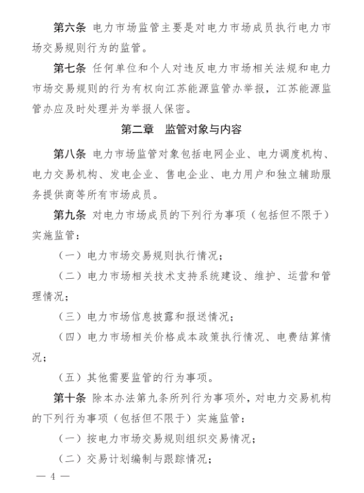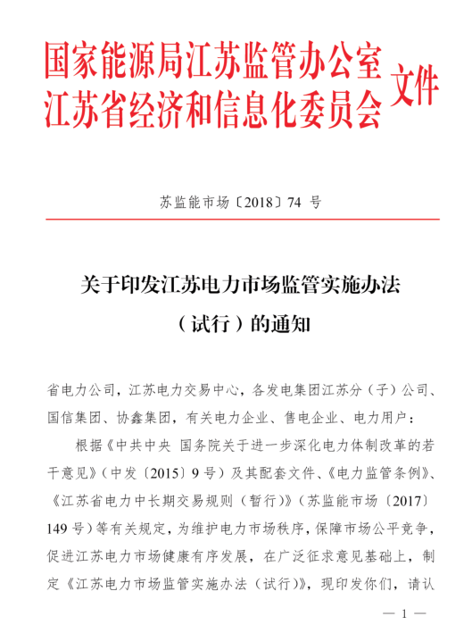 7月30日,江蘇能監(jiān)辦官網(wǎng)發(fā)布了《江蘇電力市場(chǎng)監(jiān)管實(shí)施辦法(試行)》的公告,晶見(jiàn)在拿到了實(shí)施辦法的文件后第一時(shí)間進(jìn)行通讀,并與5月3日的