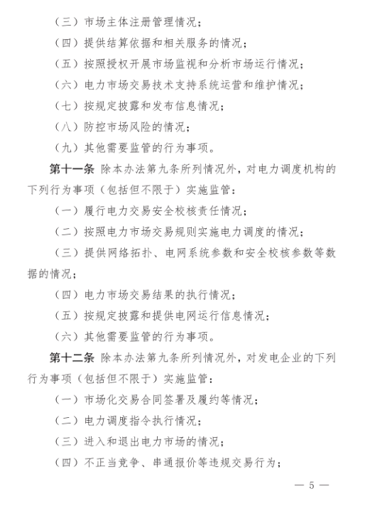 在試行版中,晶見(jiàn)發(fā)現(xiàn)大體內(nèi)容并沒(méi)有太多改動(dòng),只進(jìn)行了小范圍的刪增和修改,比如在征求意見(jiàn)稿第十二條中有一點(diǎn):發(fā)電企業(yè)在江蘇電力市場(chǎng)所占比例是要實(shí)施監(jiān)管的,但是在試行版中就被刪掉了,不知道這是不是與后面的市場(chǎng)約束力部分重合,也可能后面市場(chǎng)力控制已經(jīng)單獨(dú)詳述。
