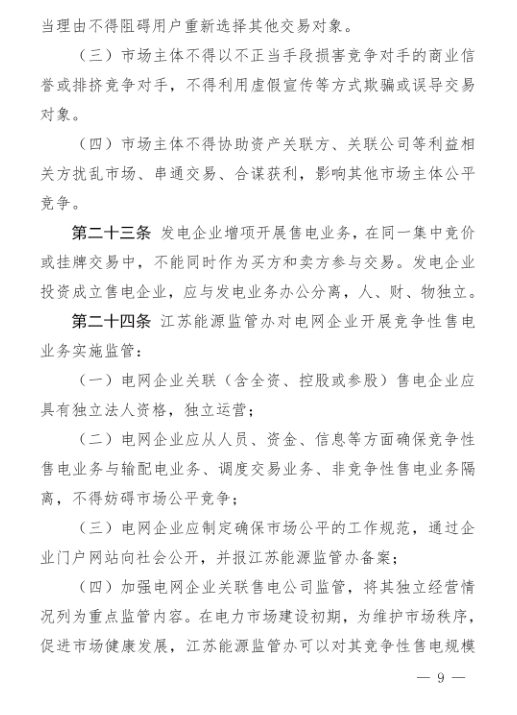江蘇電力市場(chǎng)監(jiān)管辦法:電網(wǎng)企業(yè)開(kāi)展競(jìng)爭(zhēng)性售電將限制規(guī)模和份額