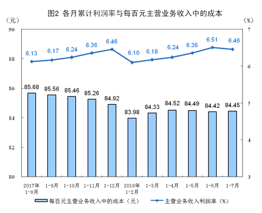 表1 2018年1-7月份規(guī)模以上工業(yè)企業(yè)主要財務(wù)指標(biāo)