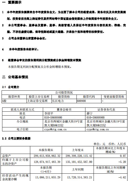 半年報丨長江電力上半年營業(yè)收入192.1億元 利潤總額突破百億