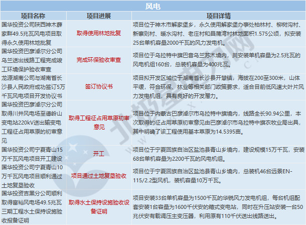 國家電投涉及項目動態(tài)12個,其中火電項目4個、風(fēng)電項目8個;
