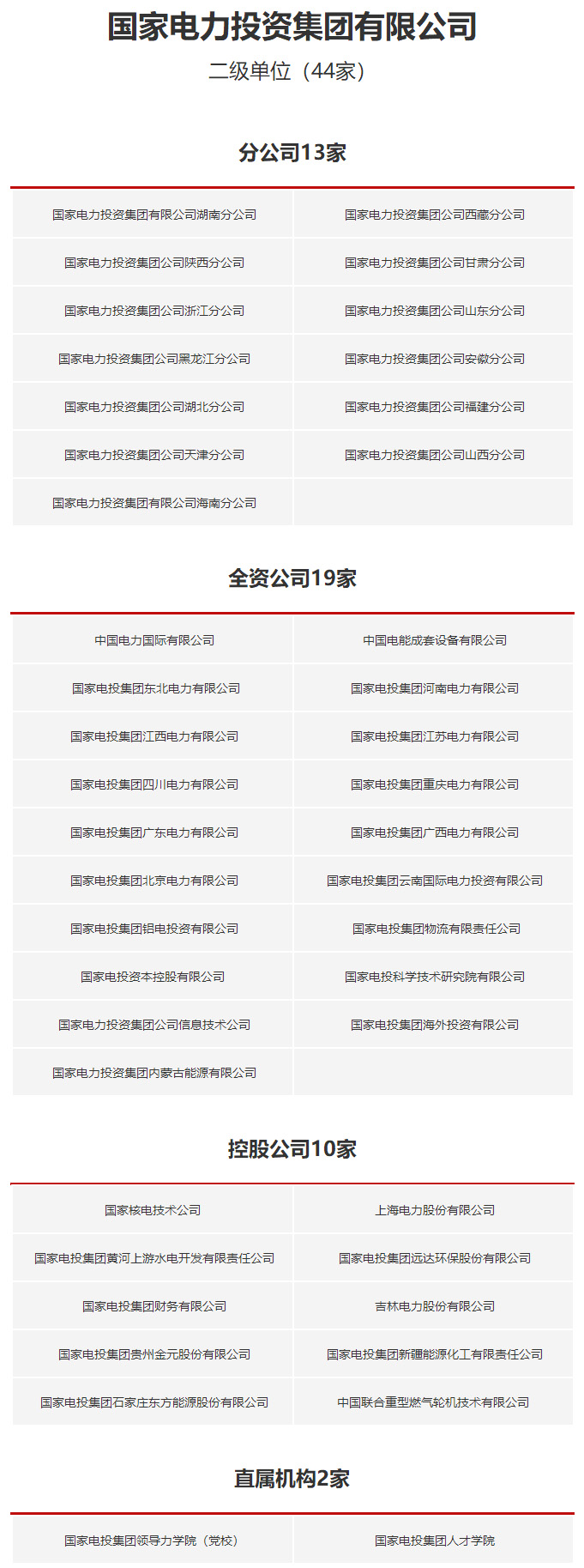 國(guó)家電投:子分公司42+直屬機(jī)構(gòu)2
