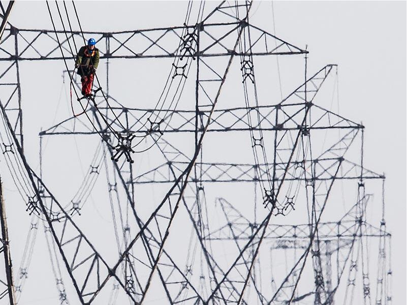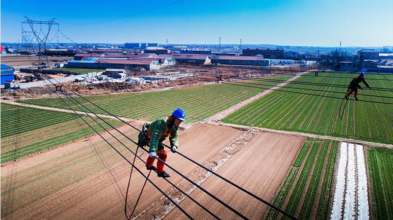 山東送變電檢修人員正在導(dǎo)線進(jìn)行檢查