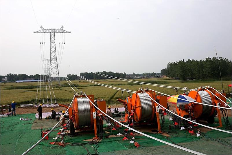 由江蘇省送變電公司負(fù)責(zé)施工的山西晉北—江蘇南京±800千伏特高壓直流輸電線路工程蘇1標(biāo)段全面進(jìn)入架線施工高峰。當(dāng)日,該公司共計(jì)200余名施工人員正奮戰(zhàn)在安徽省蚌埠市五河縣境內(nèi)進(jìn)行N3301至N3318架線施工,確保該標(biāo)段在今年九月底全部完工。