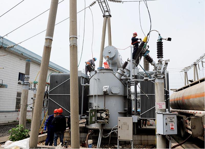 靖江市供電公司組織人員對110千伏變電站進行改造,更換大容量變壓器,以滿足斜橋鎮(zhèn)客戶迎峰度夏期間的用電需求。