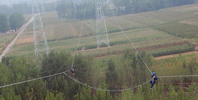 為加快110千伏觀鄭線施工進(jìn)度。確保該線路9月25日全線施工通電。河南省登封市電業(yè)局施工人員緊緊抓住秋高氣爽、氣溫日漸轉(zhuǎn)涼的大好施工季節(jié),以每天12個小時的工作時間,全力奮戰(zhàn)在位于南箕山的該線路高塔銀線之上。