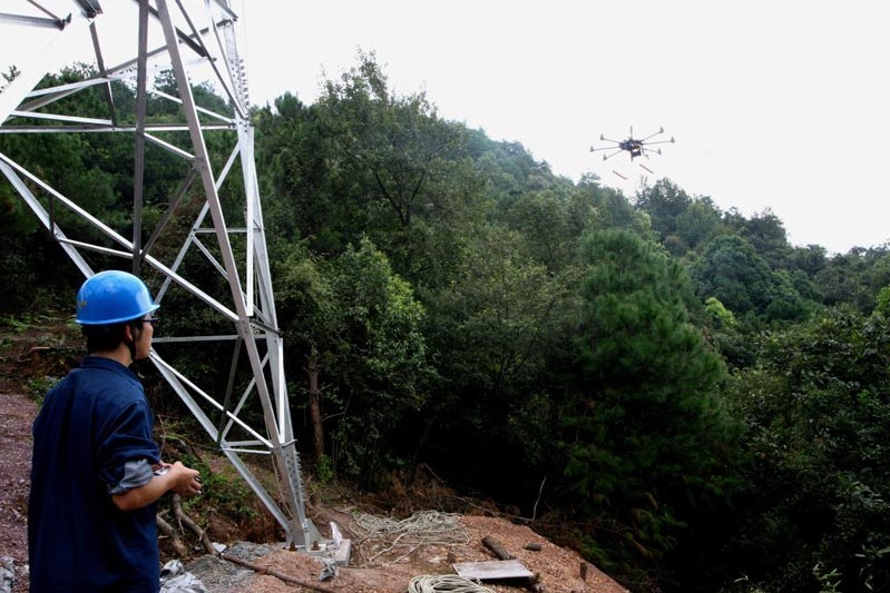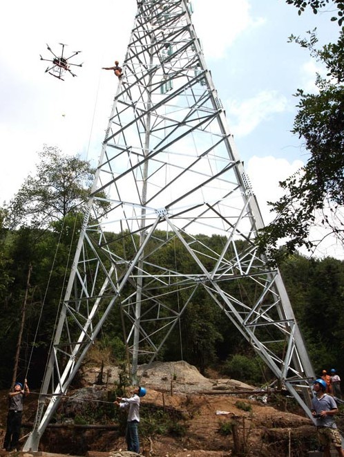 據(jù)了解,在山區(qū)進(jìn)行輸電線路架線施工,因為山間樹木叢生,最難攻克的便是將引線從一基鐵塔拉向另一基鐵塔。以往,采用人工架線,引線“邁”過一座塔便需要至少3天。數(shù)控“架線工”的到來,大大提高了山區(qū)輸電工程架線的效率。