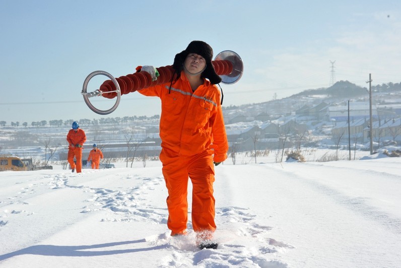 威海冬季雪霧天密集,山東威海供電公司作業(yè)人員趁著難得的雪晴天開展高空作業(yè),對(duì)區(qū)域內(nèi)所有的220千伏備用線路進(jìn)行消缺,為主網(wǎng)安全穩(wěn)定運(yùn)行提升保險(xiǎn)系數(shù)。圖為1月,作業(yè)人員冒嚴(yán)寒更換220千伏寧戚線老化受損的絕緣子。220千伏寧戚線從山東煙臺(tái)到威海,是威海最早接入的220千伏線路之一,為威海區(qū)域經(jīng)濟(jì)發(fā)展提供了強(qiáng)勁的動(dòng)力之源。