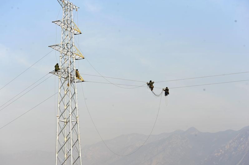 入冬以來,多年來罕見的長期霧霾籠罩使外線施工人員的心理和身體遇到了嚴(yán)峻挑戰(zhàn)。在河南省登封市電業(yè)局110千伏登潁線施工現(xiàn)場,為保證該線路1月31日竣工投運(yùn),外線工們以每天10個(gè)小時(shí)的工作時(shí)間,堅(jiān)持奮戰(zhàn)在濃霧籠罩的高塔銀線之上。