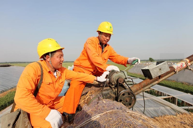 圖二:5月13日,該公司羊莊供電所農(nóng)電工在上屯村甜椒蔬菜大棚內(nèi)為菜農(nóng)布設(shè)臨時(shí)用電線路。