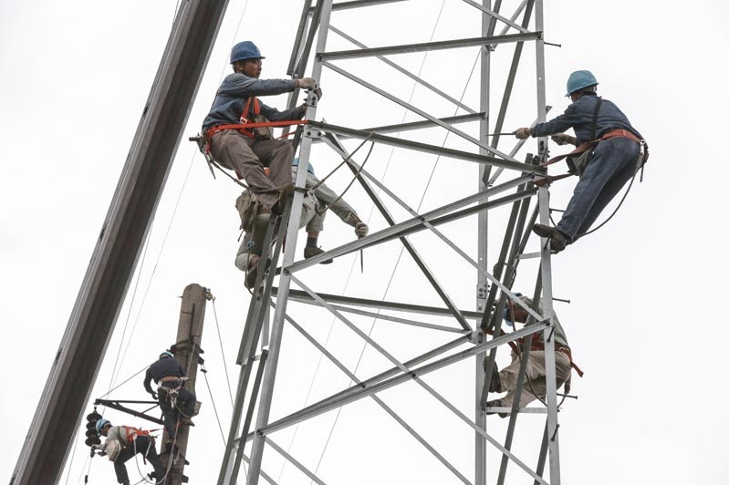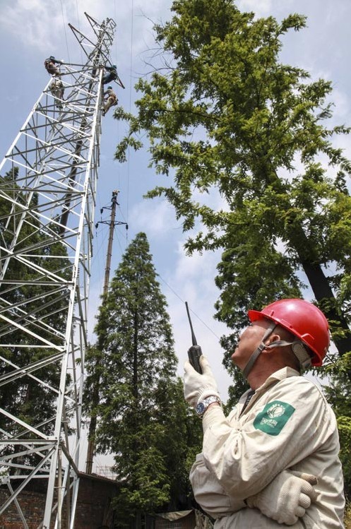5月27日,江蘇泰州安泰輸變電工程有限公司工作人員正在35千伏口港線88號(hào)-90號(hào)改造現(xiàn)場(chǎng)組立鐵塔。 35千伏口港線工程肩負(fù)著泰州市高港區(qū)務(wù)港局和長江口岸閘口的供電任務(wù)。此線路已投運(yùn)近20年,由于運(yùn)行年限較