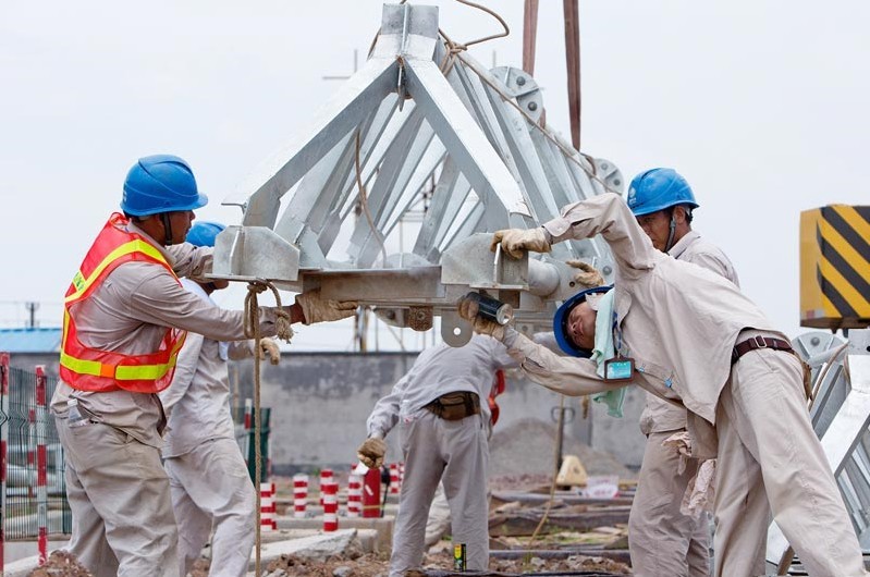 7月3日,國(guó)家電網(wǎng)浙江金華供電公司工作人員在武義縣城郊220千伏瑩鄉(xiāng)變電站建設(shè)工地安裝電網(wǎng)設(shè)備。當(dāng)日,國(guó)家電網(wǎng)浙江金華供電公司送變電工程有限公司40多名工作人員,冒著38攝氏度高溫,揮汗如雨,奮戰(zhàn)在建設(shè)一