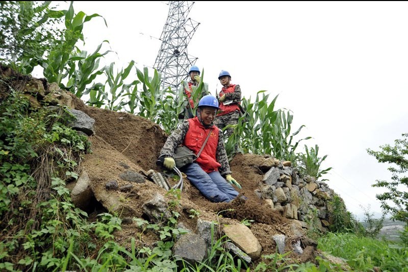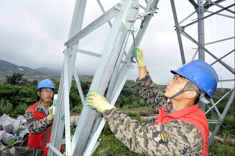 7月9日下午,國(guó)家電網(wǎng)山東棲霞供電3名保電隊(duì)員正在雨后特巡重要線路?! ‘?dāng)日,上午9時(shí),一場(chǎng)急雨不期而至,大雨伴隨大風(fēng)持續(xù)3個(gè)多小時(shí),為保證棲霞電網(wǎng)雨后安全穩(wěn)定運(yùn)行,棲霞供電16支保電服務(wù)隊(duì),分別奔赴各