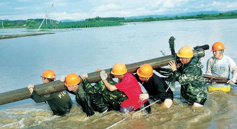 7月5日下午,黑龍江尚志市供電公司搶修人員在齊腰深的洪水中架設(shè)電桿。進(jìn)入7月,連續(xù)強(qiáng)降雨導(dǎo)致尚志市多處河道漲水,部分地區(qū)突發(fā)山洪,多條10千伏線路不同程度受損。災(zāi)情發(fā)生后,尚志市供電公司迅速啟動(dòng)防汛預(yù)