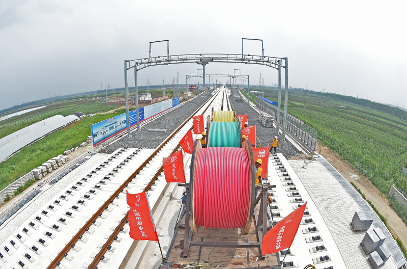 7月18日,中鐵電氣化局工程技術人員在敷設電力高壓電纜。