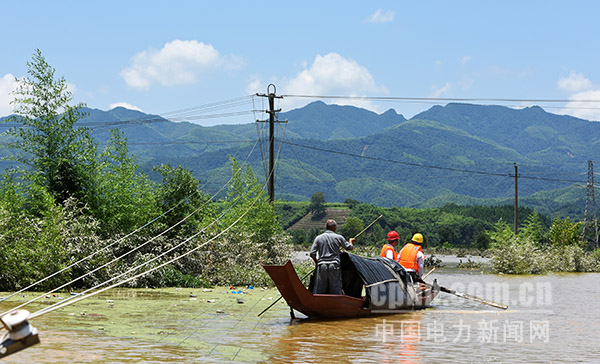 7月2日清早,趁水位稍退,4名電力應(yīng)急搶修隊(duì)員在社區(qū)干部的帶領(lǐng)下,乘船來(lái)到了水淹地帶,他們一邊排查線路,一邊斷開(kāi)被水淹的房屋進(jìn)戶線。雖然天氣炎熱,但是大家顧不上喝上一口水,停不下忙碌的腳步,只想盡快能恢復(fù)供電。經(jīng)過(guò)4個(gè)小時(shí)的奮戰(zhàn),隊(duì)員們處理了供電線路安全隱患8處。當(dāng)變壓器重新送上電,發(fā)出“嗡嗡”的聲音,周?chē)辜钡却娜罕娺B連拍手稱快。