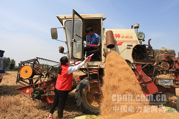 山東省梁山縣供電公司彩虹共產(chǎn)黨員服務(wù)隊隊員來到館驛鎮(zhèn)武莊村田間地頭,向收割機駕駛員、村民發(fā)放講解電力設(shè)施保護和安全用電常識,耐心解