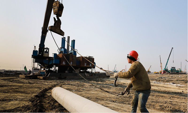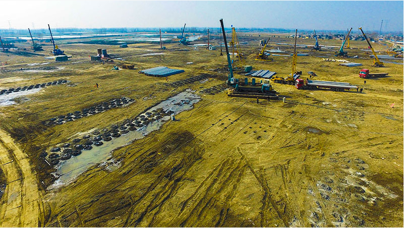 【背景】±800千伏錫泰特高壓直流換流站站址內(nèi),工程建設(shè)者們正冒著零下8攝氏度的嚴(yán)寒進(jìn)行基礎(chǔ)施工。