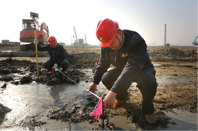 【背景】±800千伏錫泰特高壓直流換流站站址內(nèi),工程建設(shè)者們正冒著零下8攝氏度的嚴(yán)寒進(jìn)行基礎(chǔ)施工。 當(dāng)日,是直流換流站站址開工