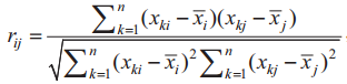 2)計算初始矩陣的相關(guān)系數(shù)矩陣,其方程如下: